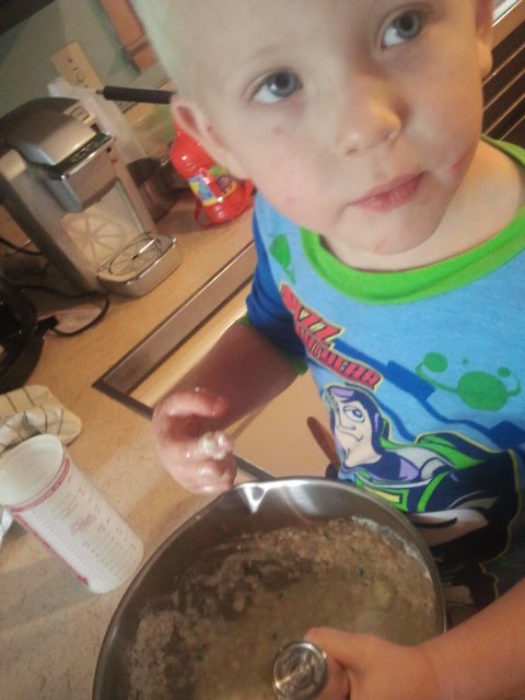 Instead of a cake, I decided to make cake pops. They were super cute but a ginormous pain in my rear. I will say they are delicious. I may make them again although probably not such a large quantity. I made some funfetti with vanilla coating and some chocolate on chocolate. I say chocolate all the way. Dawson loved it!